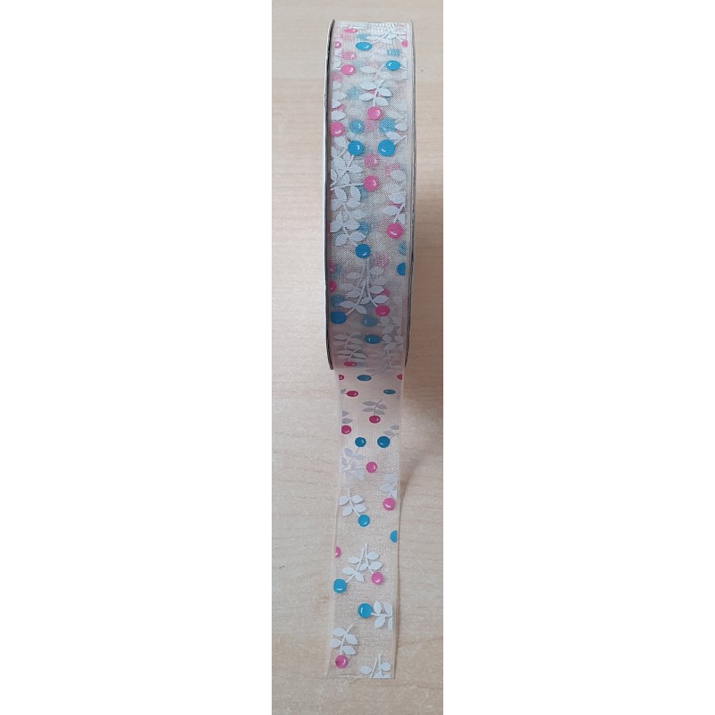 Organzaband Blätter weiss