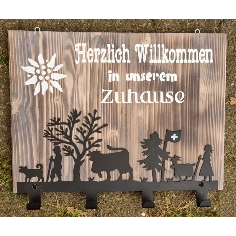 Garderobe Alpaufzug weiss Herzlich Willkommen