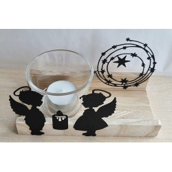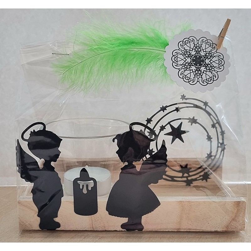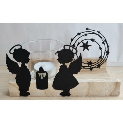Teelicht Holz/Glas Zwei Engel