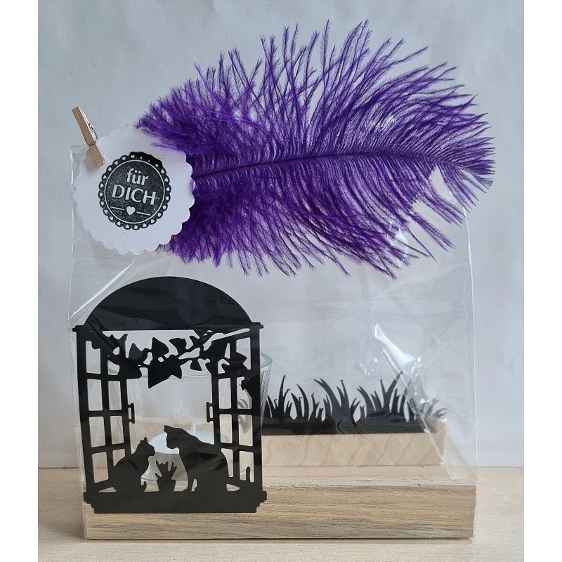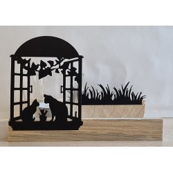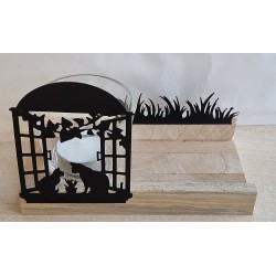 Teelicht Holz/Glas Katzen
