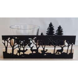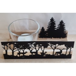 Teelicht Holz/Glas Hirsche/Wald