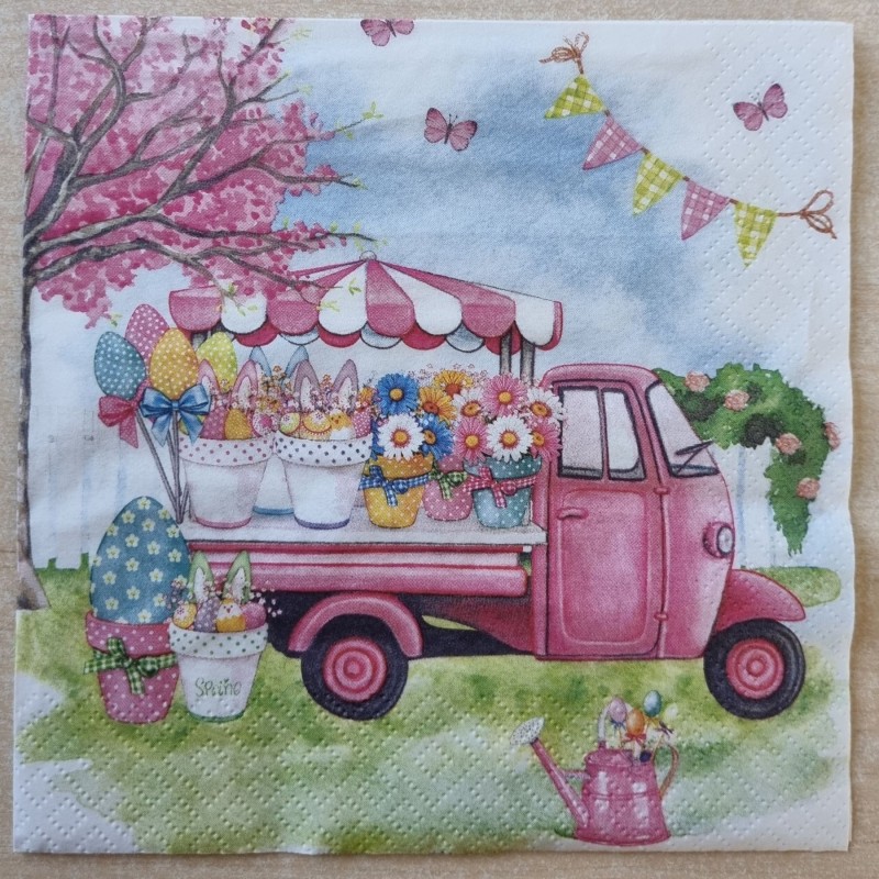 Serviette Auto/Blumen