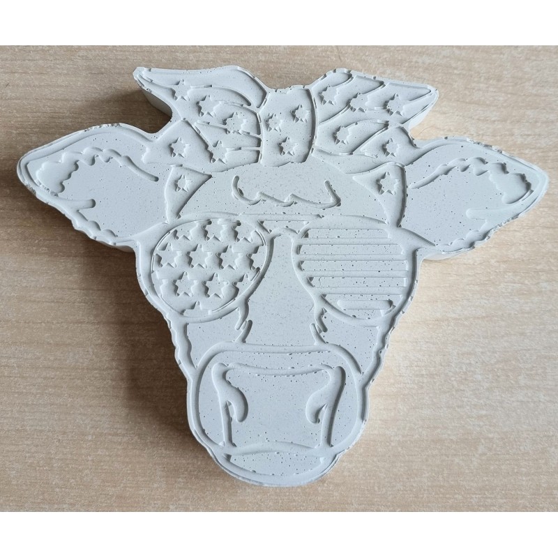 Beton Kuh-Kopf mit Sonnenbrille weiss