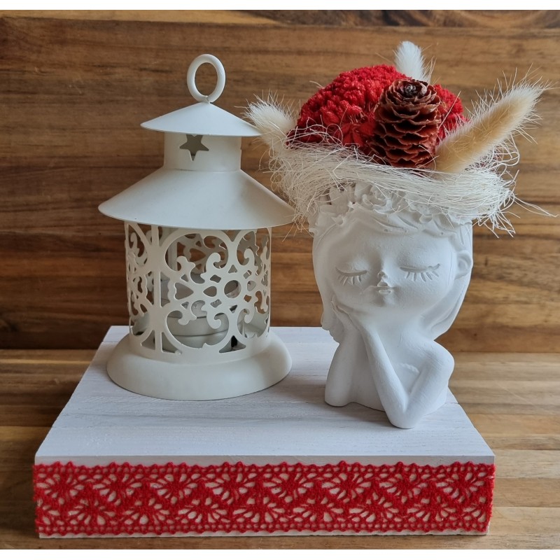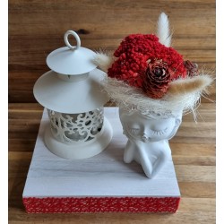 Teelichtdeko mit Trockenblumen rot