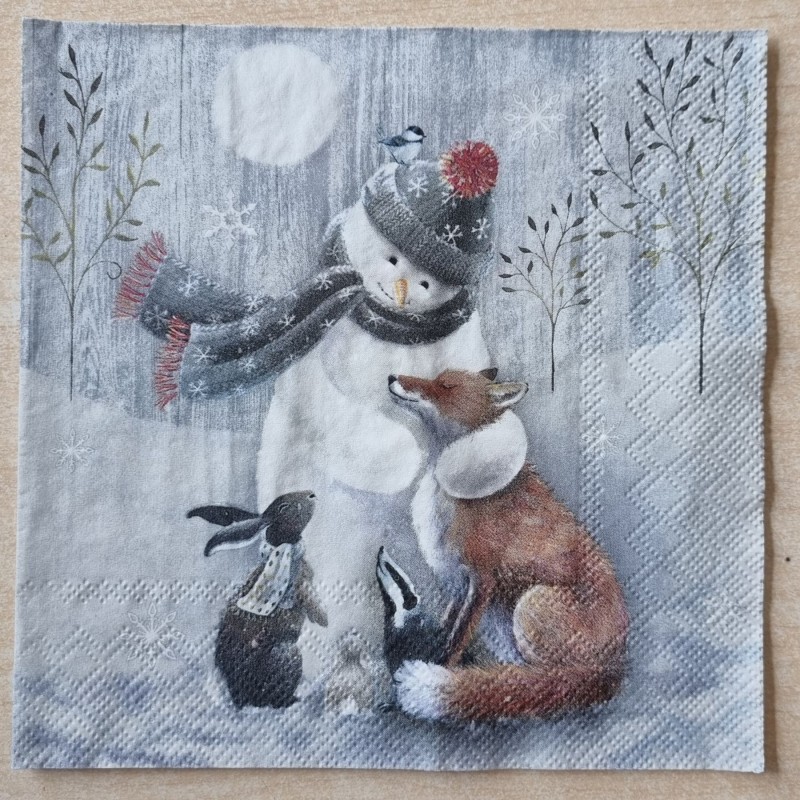 Serviette " Schneemann mit Waldtieren "