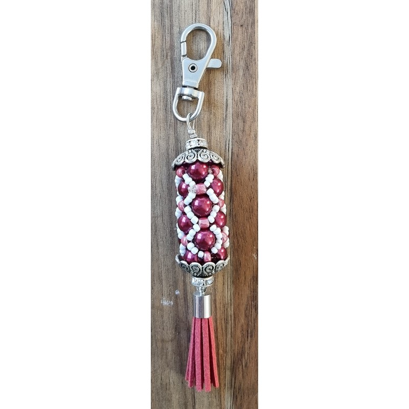 Handgefädelter Schlüsselanhänger rot/weiss/silber