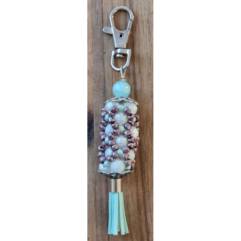 Handgefädelter Schlüsselanhänger creme/mauve/silber