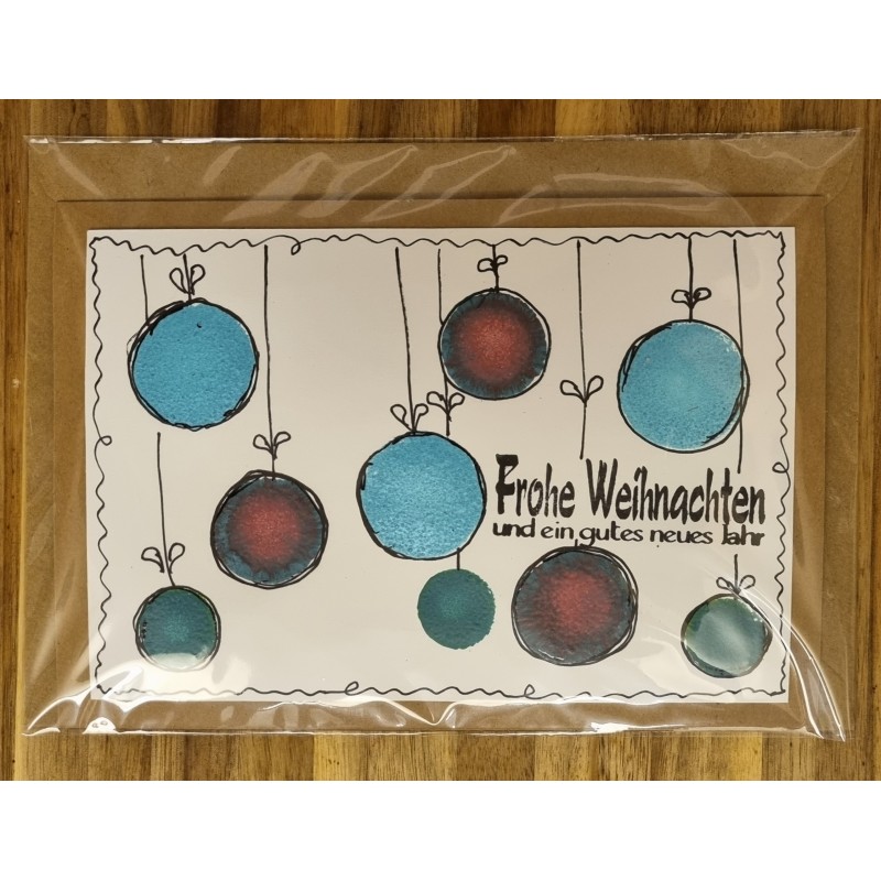 Karte " Weihnachtskugeln " türkis/bordeaux