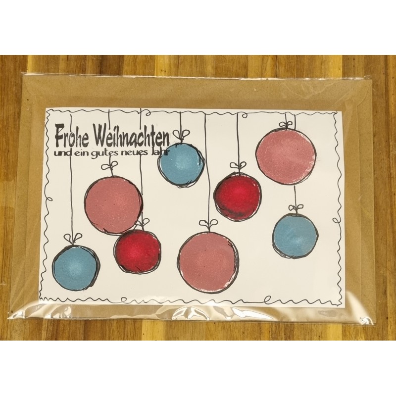 Karte " Weihnachtskugeln " rot/rosa/blau