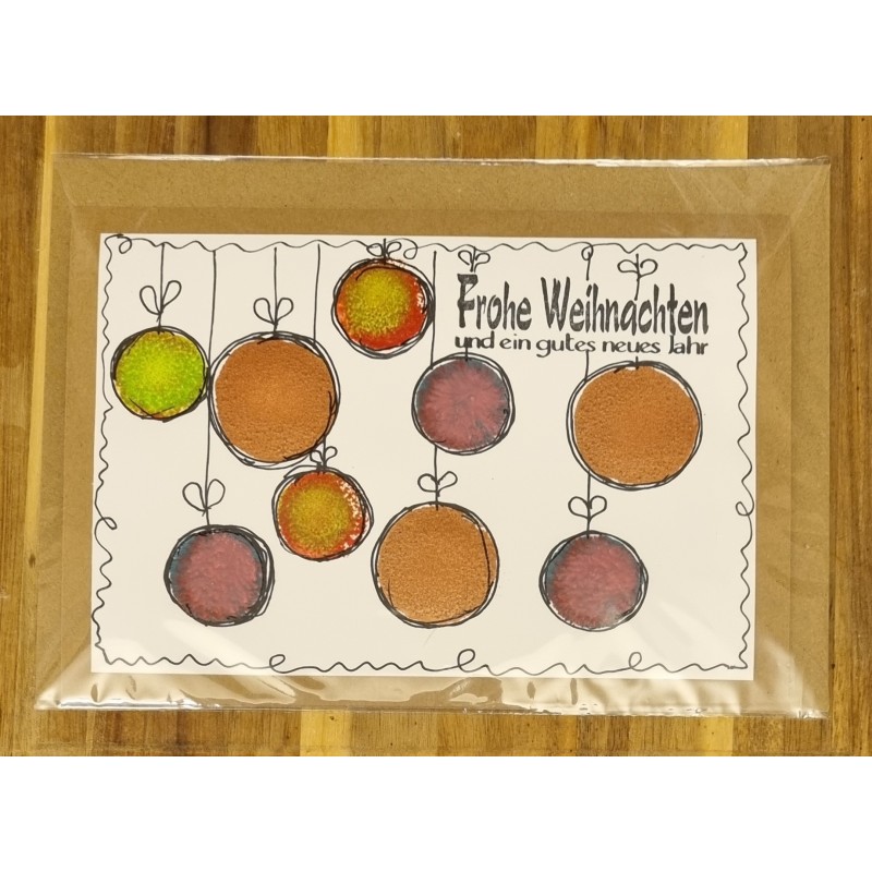 Karte " Weihnachtskugeln " bronze/mauve/grün