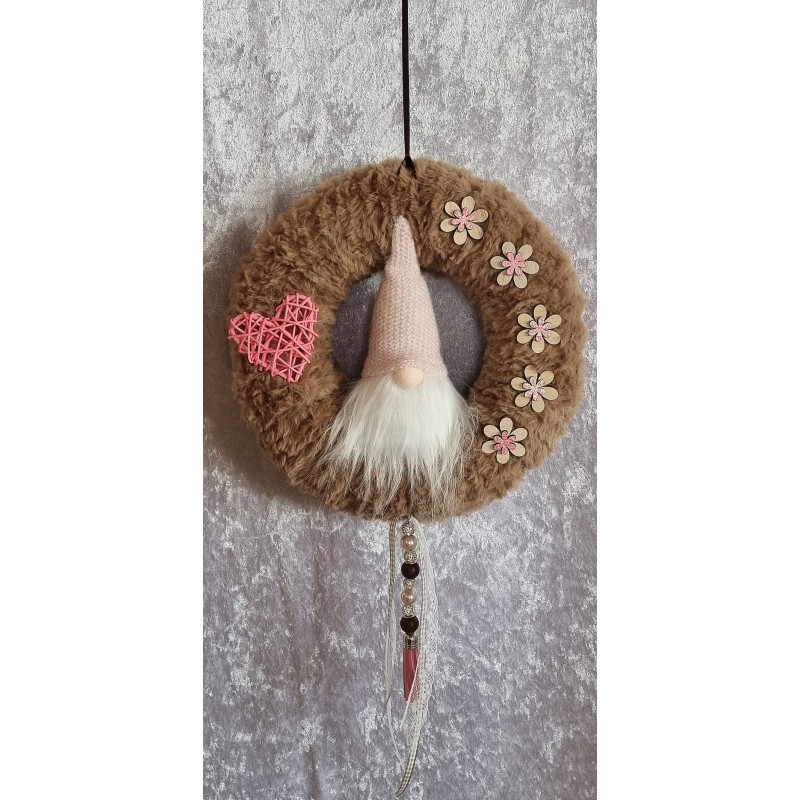 Tür/Wanddeko Ring braun/Wichtel rosa