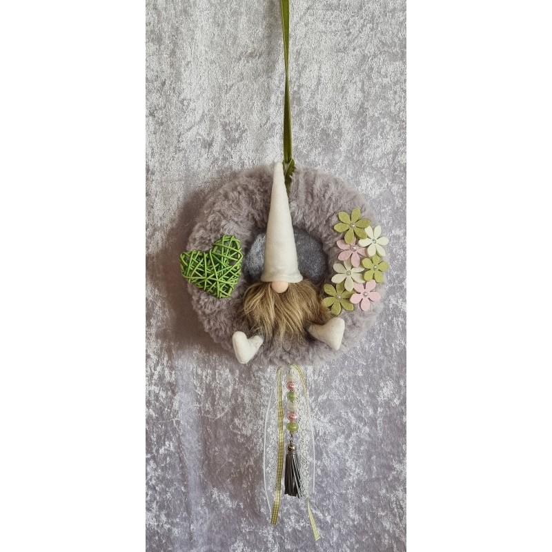 Tür/Wanddeko Ring hellgrau/Wichtel creme