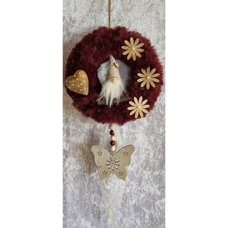 Tür/Wanddeko Ring bordeaux/ Wichtel hellgrau