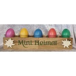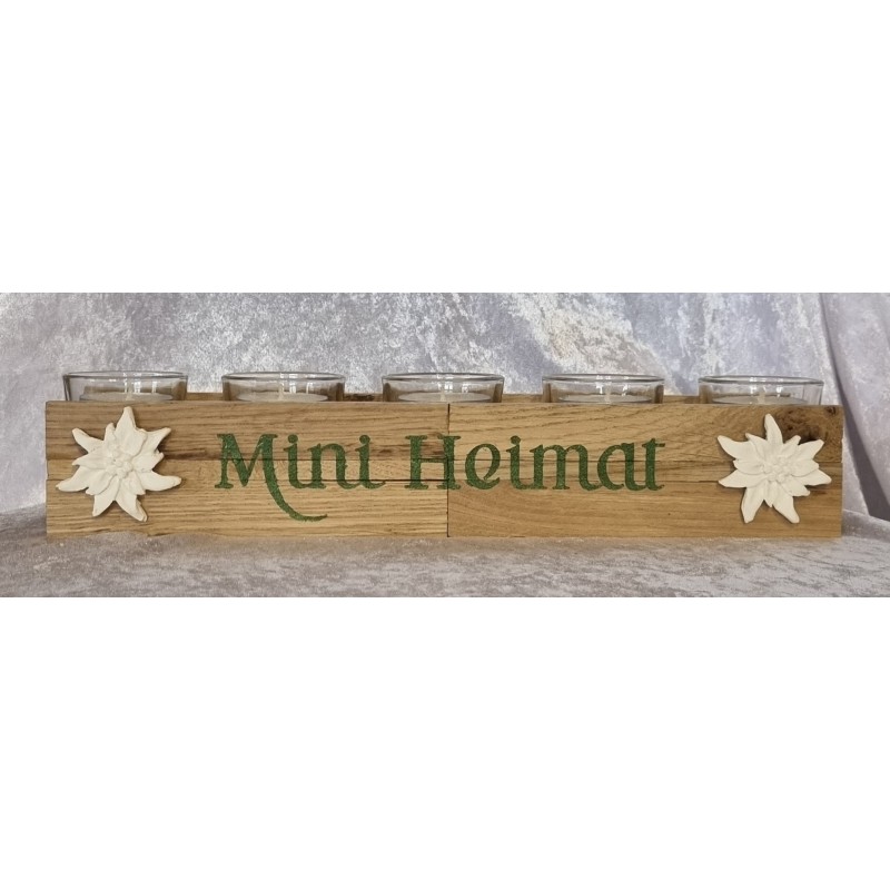 Teelicht/Eier Balken " Mini Heimat " grün/ Edelweiss