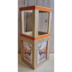 Klötzchen Doppel-Laterne Hirsch/Blumen orange