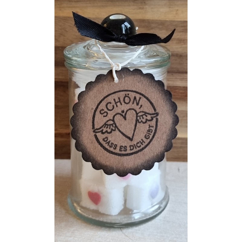 Glas mit Würfelzucker " Schön, dass es Dich gibt "