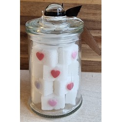 Würfelzucker mit Zuckerherzen verziert