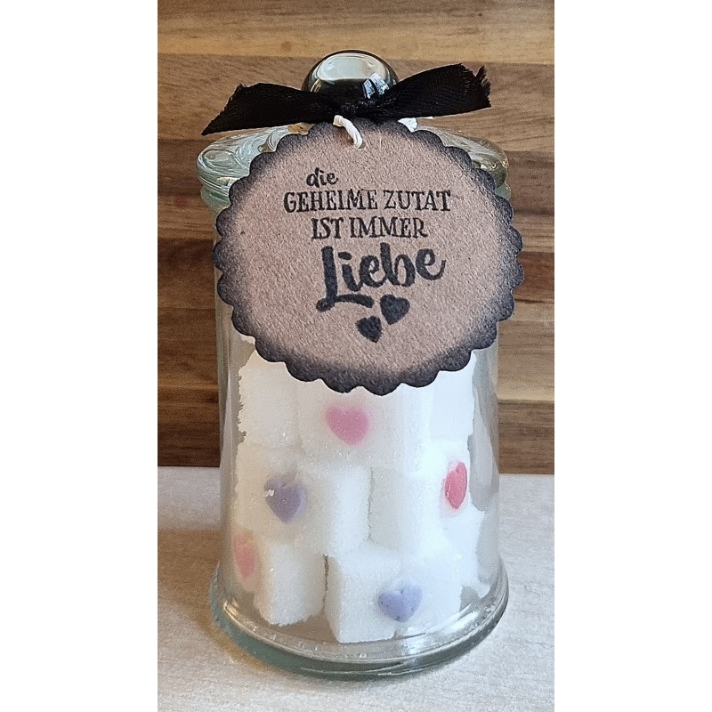 Glas mit Würfelzucker " Die geheime Zutat...."