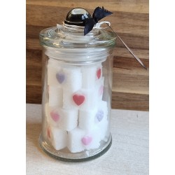 Würfelzucker mit Zuckerherzen verziert