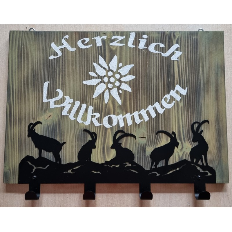 Garderobe Steinböcke geflammt "Herzlich Willkommen" hellgrün