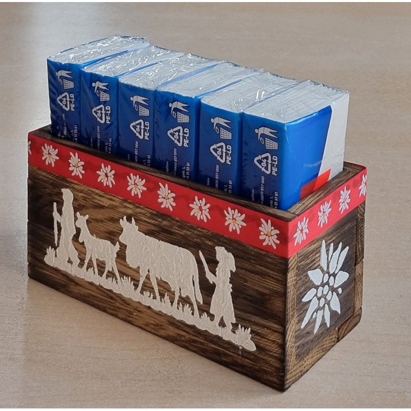 Taschentuch Böxli geflammt Alpaufzug/Band Edelweiss rot