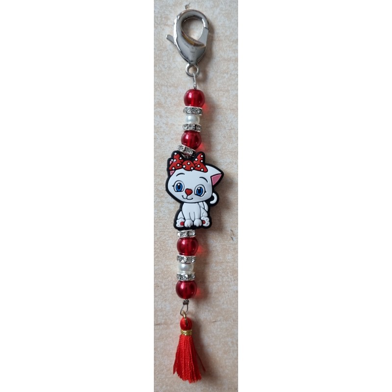 Schlüsselanhänger Katze rot/weiss