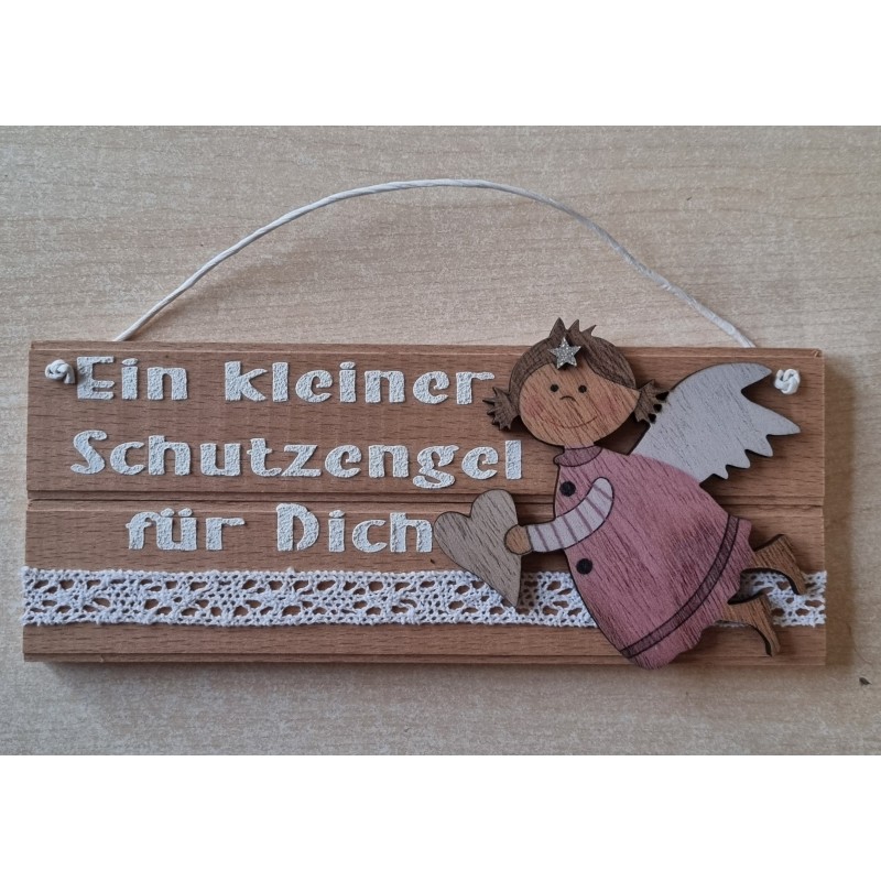 Schild natur " Ein kleiner Schutzengel...." Holz Engel/rosa