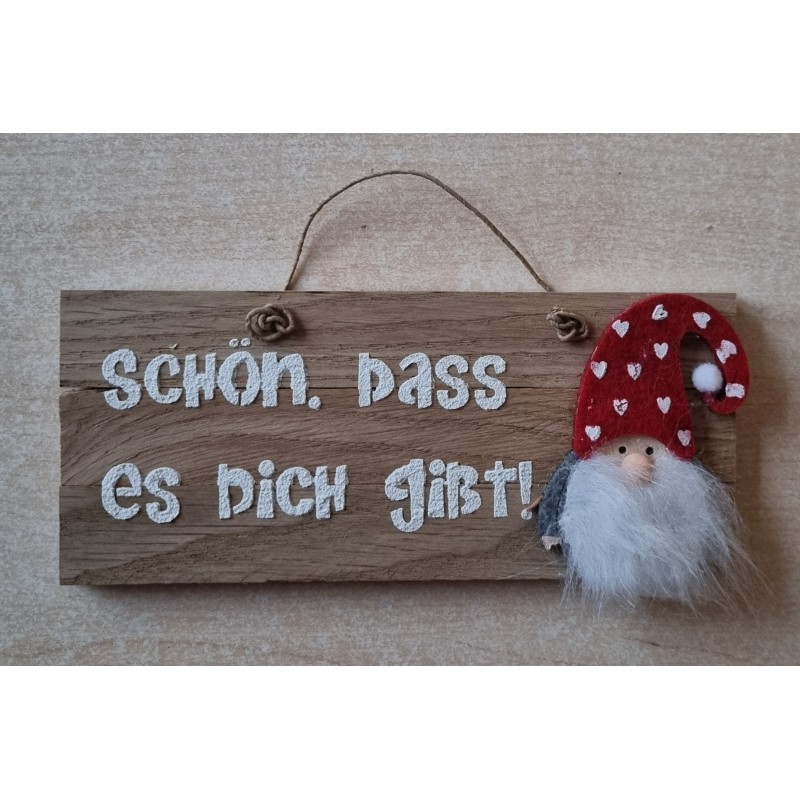 Schild natur " Schön, dass es..." Wichtel Filz/ rot mit Herzen