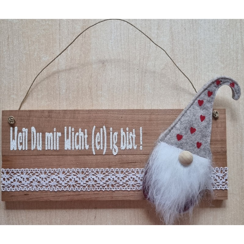 Schild hell " Weil Du mir....." Wichtel beige mit Herzen