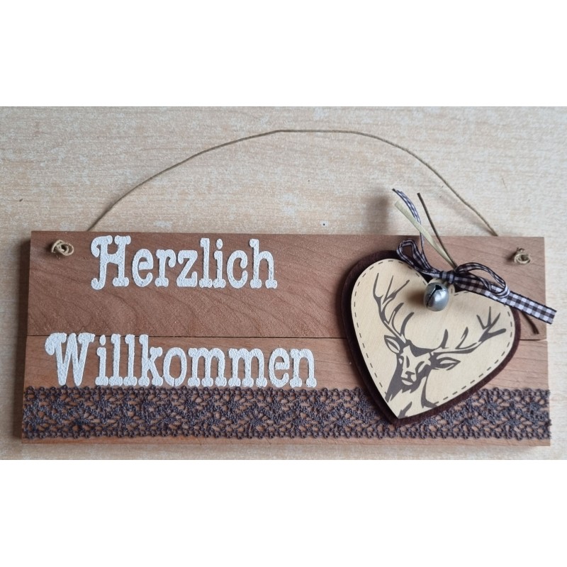 Schild natur " Herzlich Willkommen " Herz/Hirsch