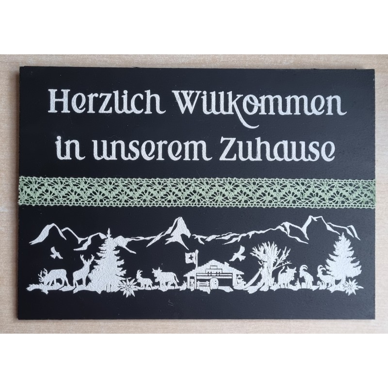 Schild schwarz " Herzlich Willkommen " Alpenfeeling/hellgrün
