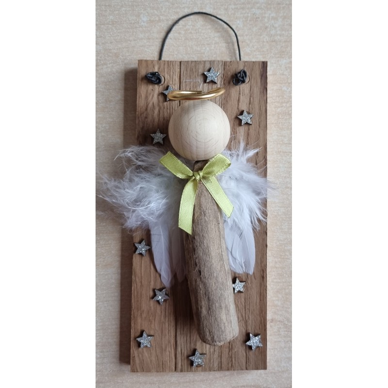 Schild Schwemmholz Engel Federn Flügel/Masche hellgrün