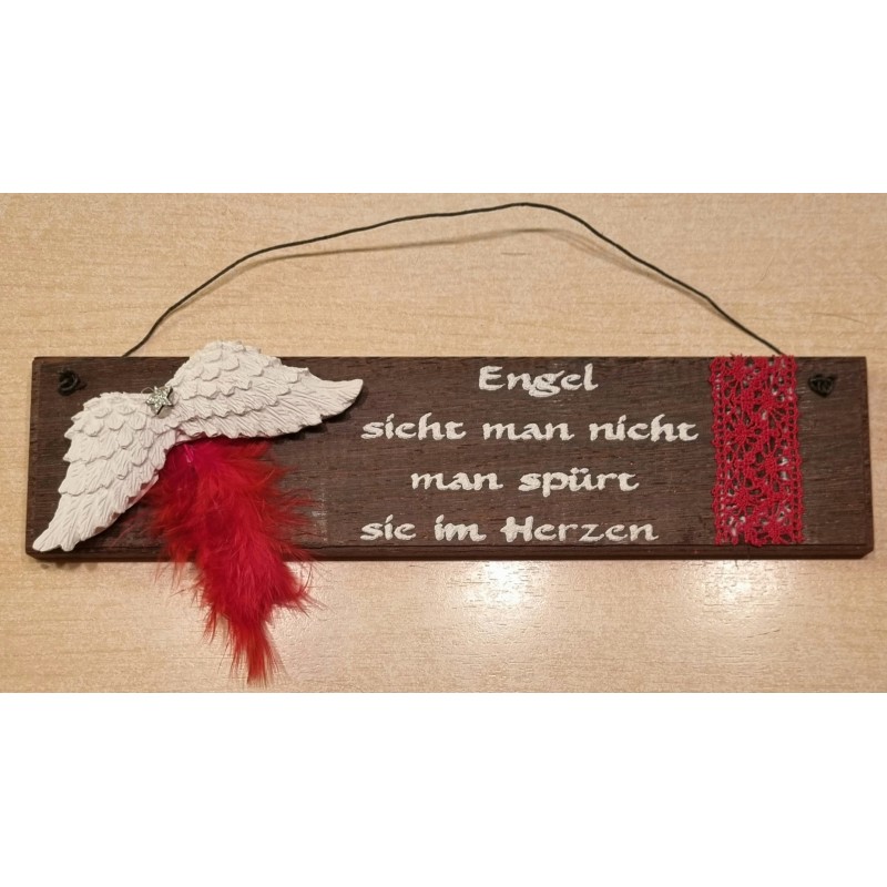 Schild dunkel " Engel sieht man...." Flügel/rot