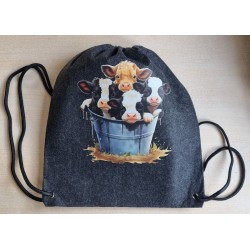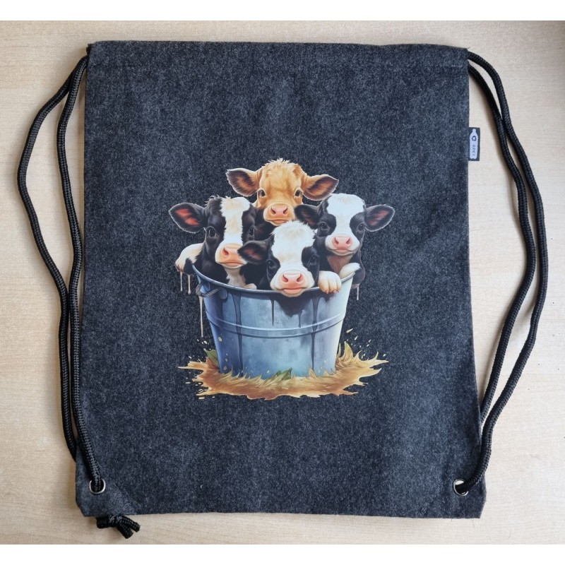 Filz Beutel mit Kordelzug anthrazit Kälber in Eimer