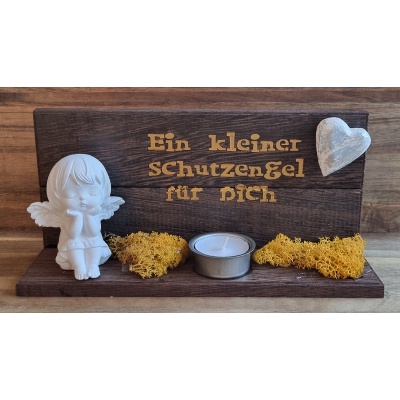 Holz Balken Teelicht "Ein kleiner Schutzengel" / goldig
