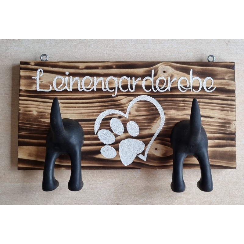 Leinengarderobe geflammt mit zwei Hundehintern schwarz