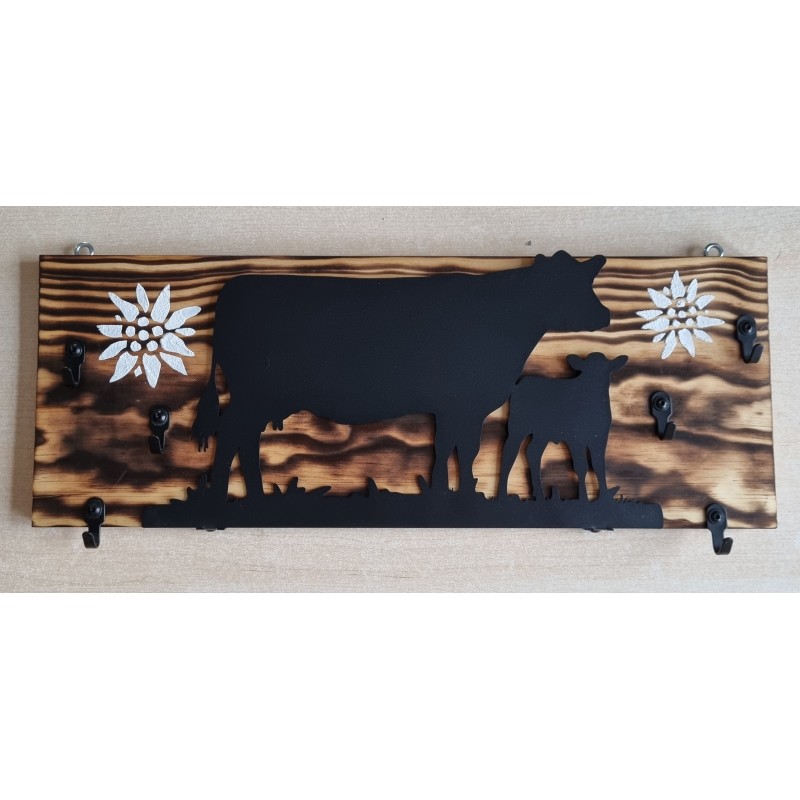 Schlüsselgarderobe geflammt Kuh mit Kalb/Edelweiss gross