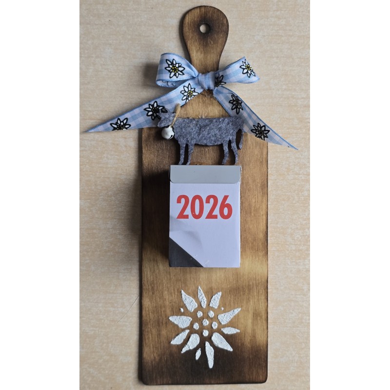 Kalender 2026 auf Brettchen Edelweiss hellblau