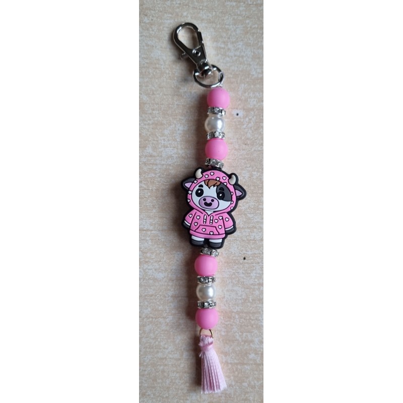 Schlüsselanhänger Kuh im Regenmantel rosa