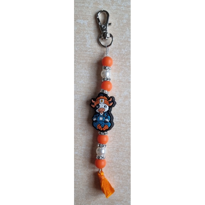 Schlüsselanhänger Kuh mit Mütze orange