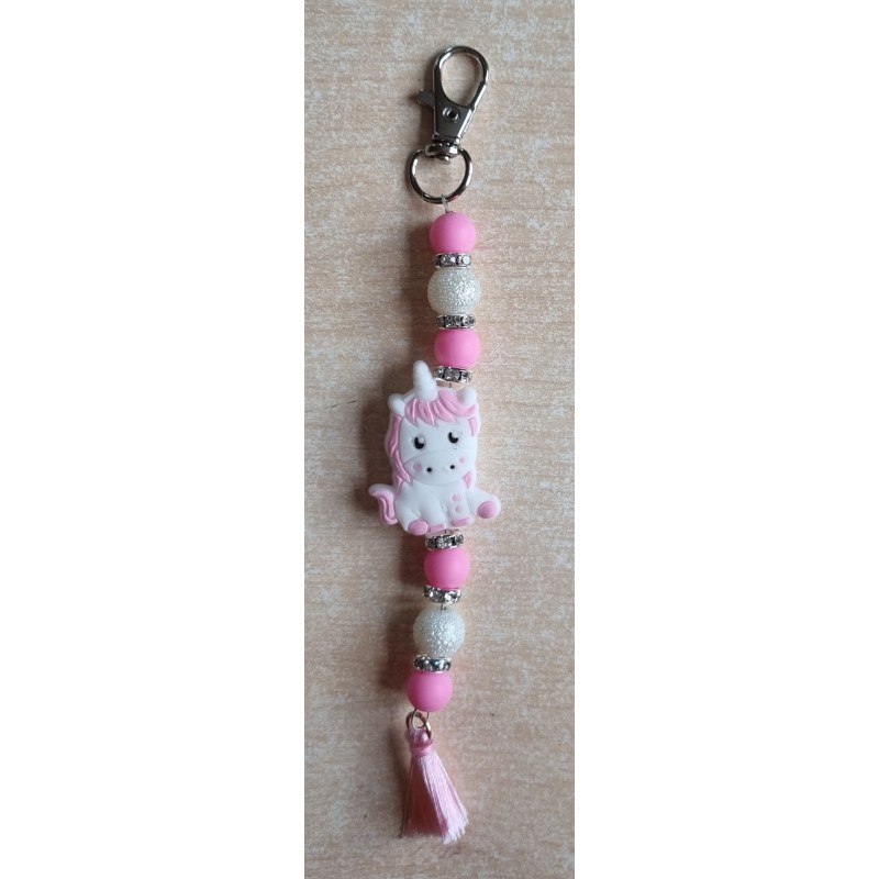 Schlüsselanhänger Einhorn weiss/rosa