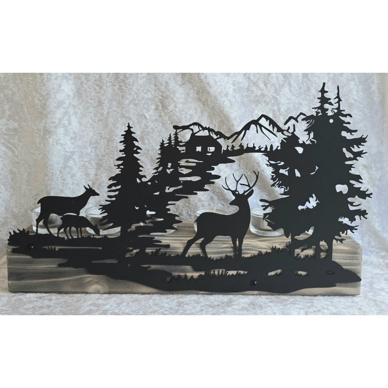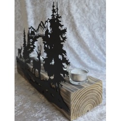 Teelicht Balken Metall Hirsch/Wald schwarz