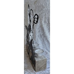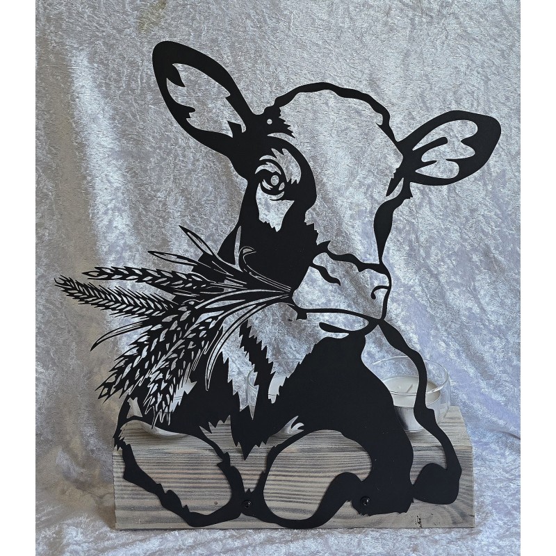 Teelicht Balken Metall Kuh/Getreide schwarz