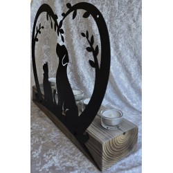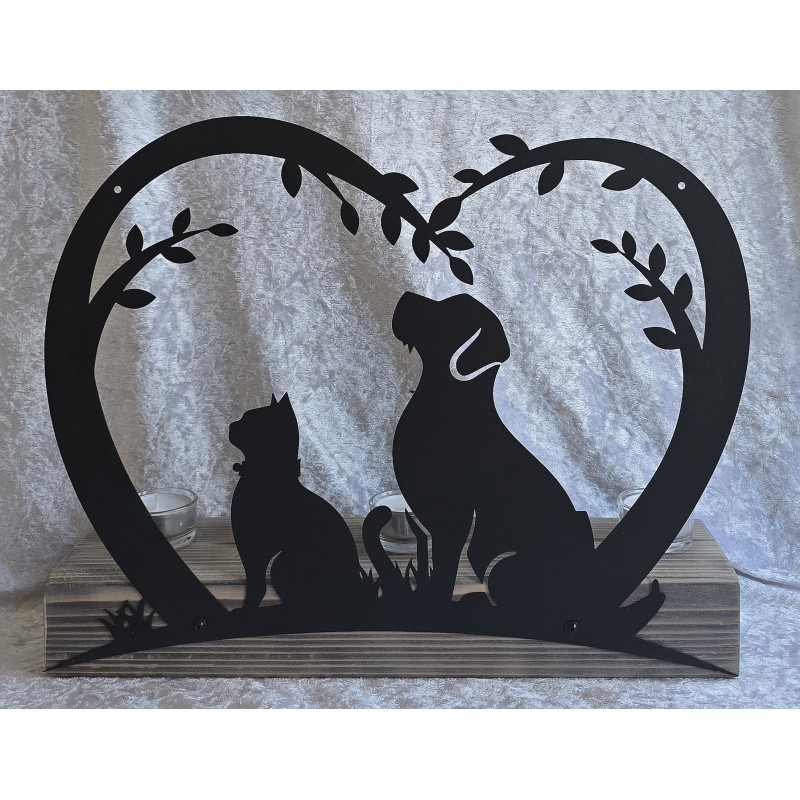 Teelicht Balken Metall Herz/Hund und Katze schwarz