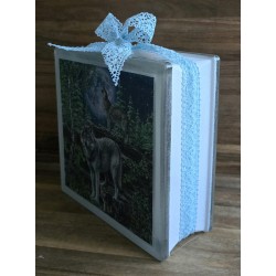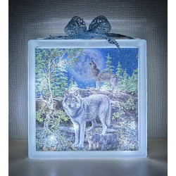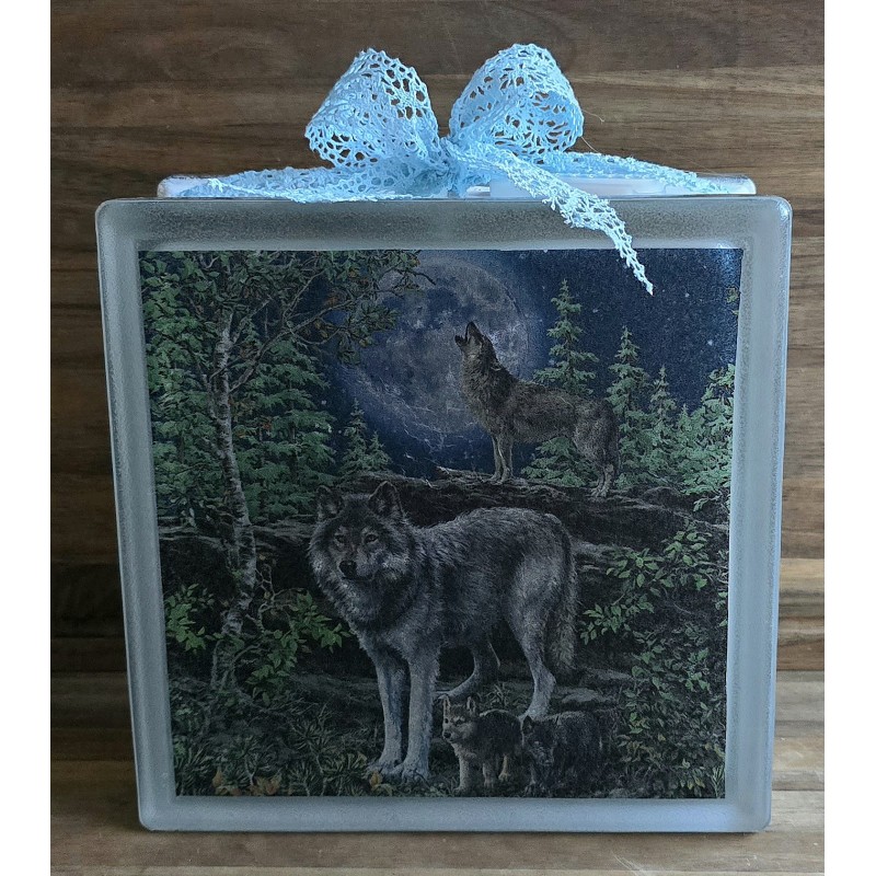 Glasbaustein Wölfe/Wald/Mond/blau