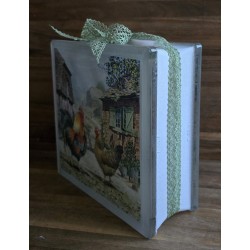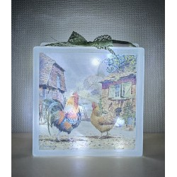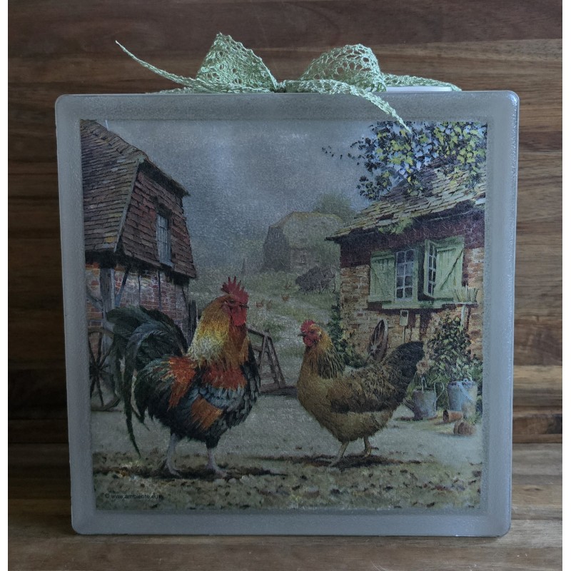 Glasbaustein Henne und Hahn auf Bauernhof/hellgrün