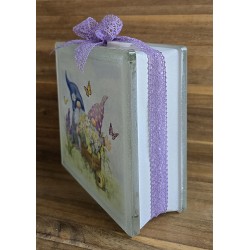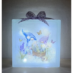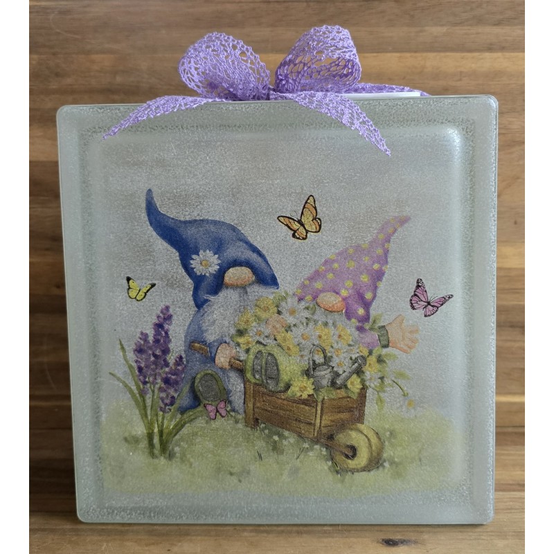 Glasbaustein Zwei Wichtel in Schubkarre/Blumen/flieder