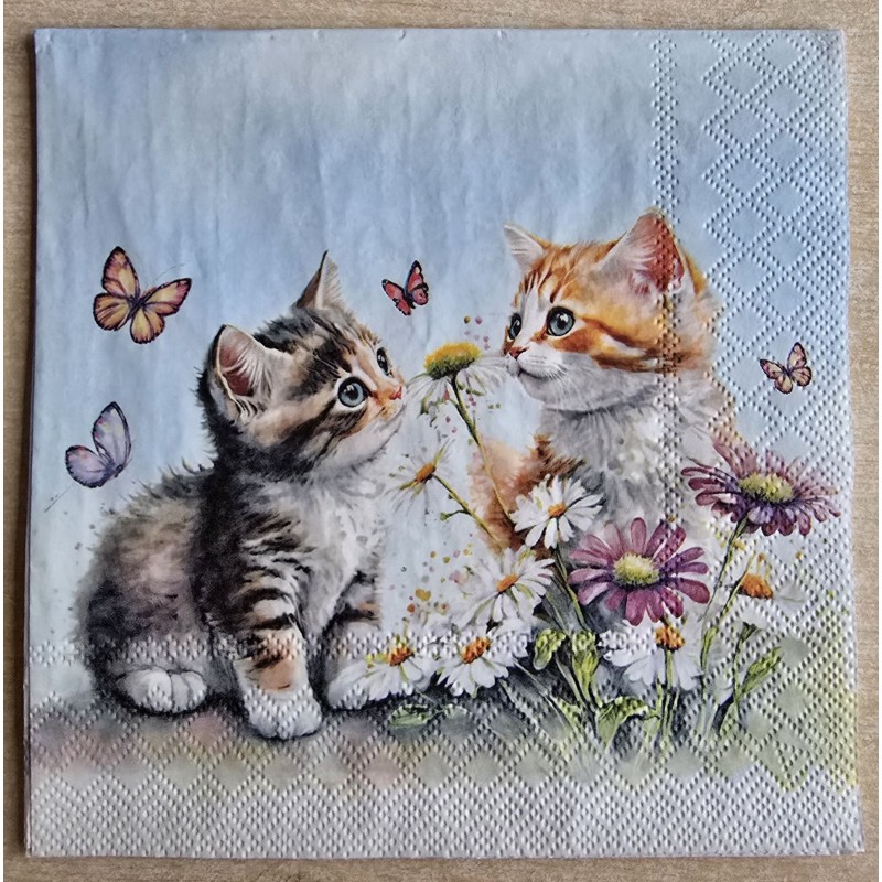 Serviette Zwei Junge Katzen/Blumen
