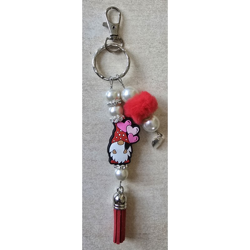 Schlüsselanhänger Wichtel mit Herzen/rot/weiss
