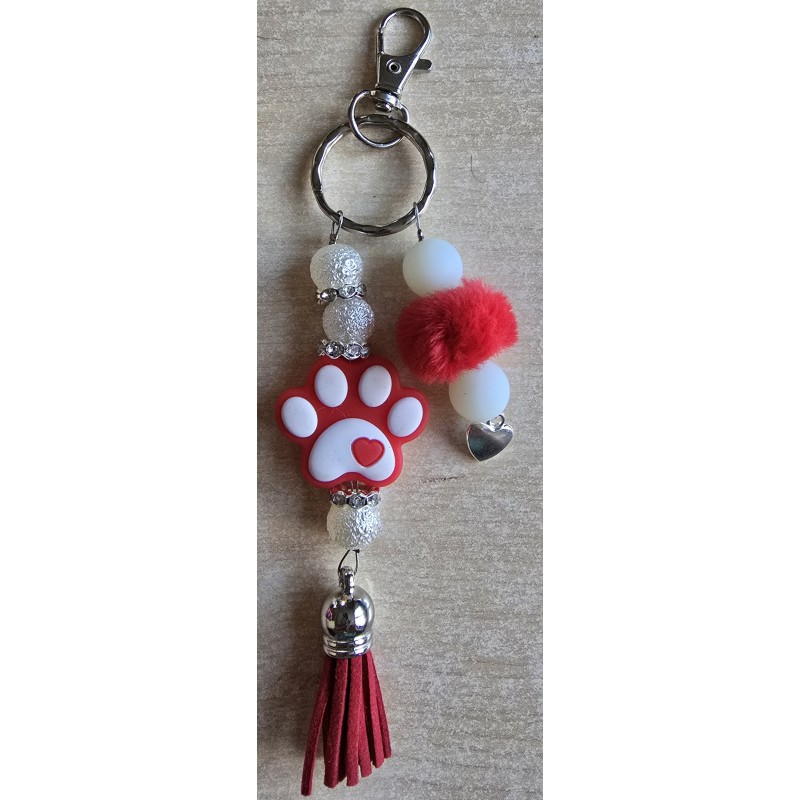 Schlüsselanhänger Pfote/rot/weiss